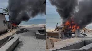 Uma obra de urbanização no Vila do Mar, no bairro Pirambu, em Fortaleza, foi paralisada, após criminosos que se identificaram como membros de uma facção criminosa ameaçarem funcionários de uma empresa terceirizada e incendiarem uma retroescavadeira, segundo a Prefeitura Municipal de Fortaleza (PMF).